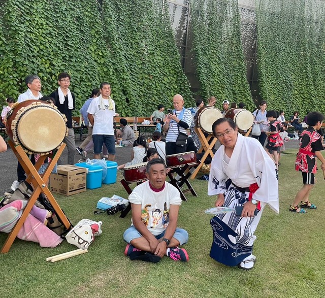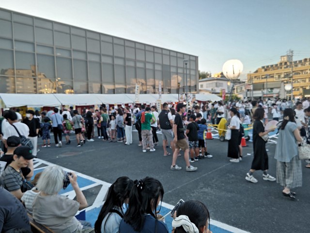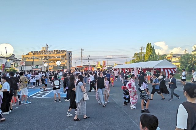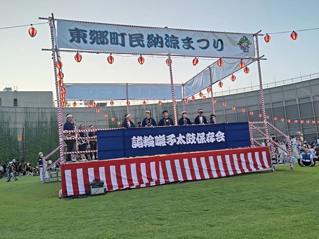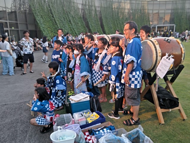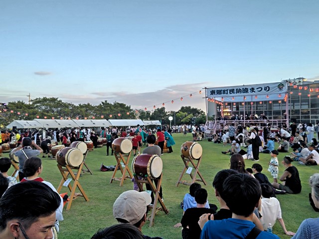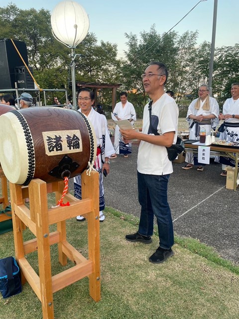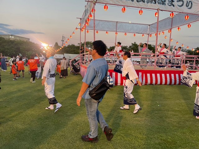 東郷各地区の盆踊り大会が終わり、全町の皆さんが一堂に会して盆踊り、太鼓などで交流しました。