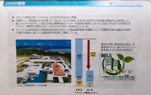 宮古島から伊良部大橋を渡り、さらに下地島の「みやこ下地島空港」のZEBの取り組みについて調査。
