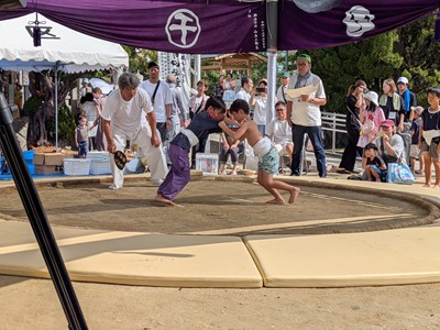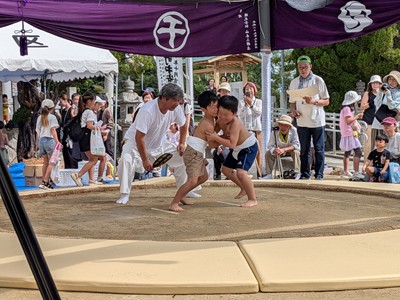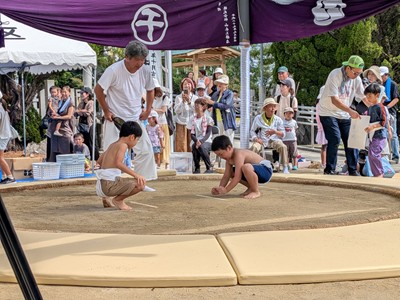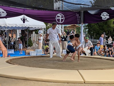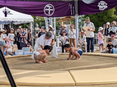 毎年、男女児童が回しを付けてトーナメント方式で戦います。