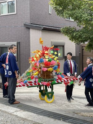 心配された雨が上り、華やかに装飾された子供御輿が巡行されました。