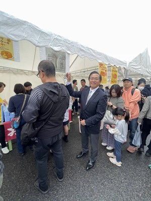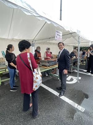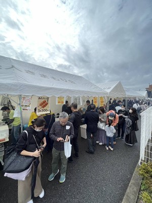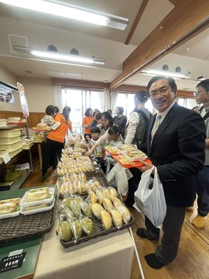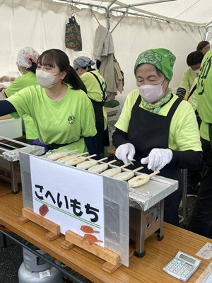幸い雨が上がり、屋外の各ブースでフランクフルト、お好み焼き、焼き鳥、五平餅、みたらし団子など購入しました。