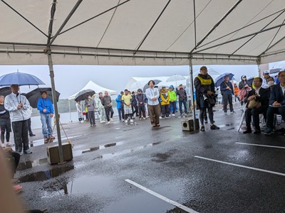 開会式で司会者から来賓に「進行上、ご挨拶は短めに」との助言により「県会議員の福田よしおです。選手の皆さん、頑張ろう❗」おわり、と短く挨拶しました。