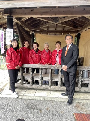 日進市岩崎城菊花展(岩崎城趾公園)で日進市地域女性団体連絡協議会の皆さんが来場者に呈茶活動を行われました。