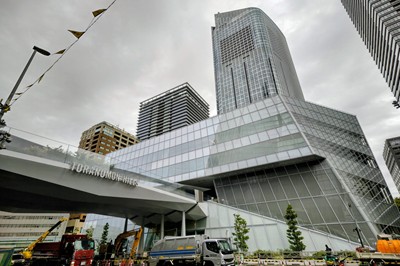 霞が関の外務省裏で東京消防庁が訓練していました。