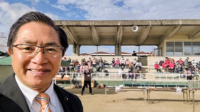 第10回日進市老人クラブグランドゴルフ大会開会式(日進市総合運動公園)にお招き頂き「一球入魂、思い出に残る大会になることを期待します」とご挨拶。