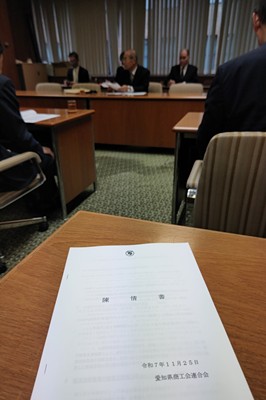 愛知県商工会連合会要望(愛知県議事堂)との懇談会に出席し、中小商工事業者を取り巻く厳しい状況(高齢化、事業継承、大型店の進出など)をどう支援していくか、貴重な意見交換ができました。