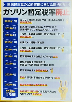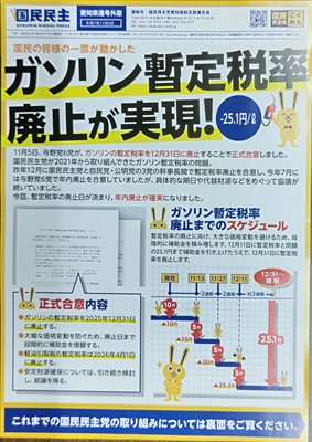 本日とうとう、参議院も採決し、全員一致でガソリン暫定税率廃止が可決されました!中日新聞夕刊一面。