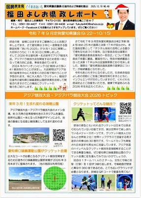 今回はアジア競技大会、アジアパラ競技大会をメインに9月県議会のトピックスなどを掲載しました。