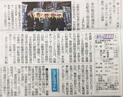 本会議で行った「自動車関係諸税の簡素化、見直し」イベントが新聞記事に掲載されました。
