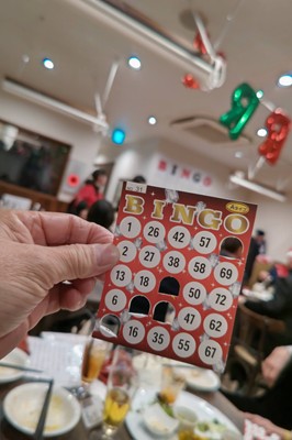 早々にリーチ、2番手で「BINGO!」賞品は「2キロの糸こんにゃく」でした(笑)
