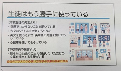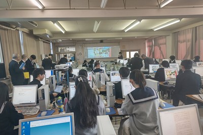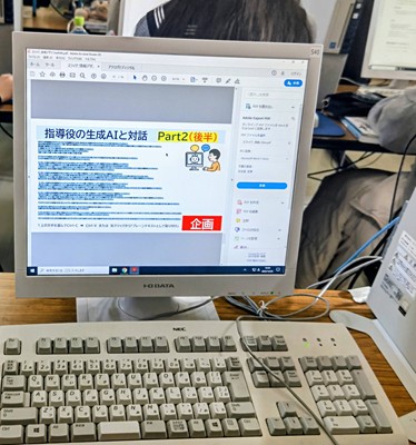 また現地調査として県立一宮高等学校の授業で生成AI活用している様子を見ながら、学生にお話をお聞きしました。
