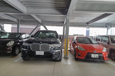 駐車場で珍しい「領」ナンバーが「ふ・440」の隣に(治外法権車両)