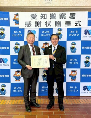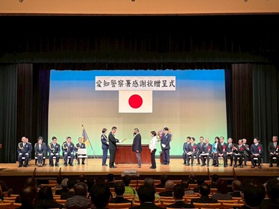 警察行政に貢献、協力された個人、団体の皆様に愛知県警察本部長、愛知警察署長から表彰状、感謝状が授与されました。