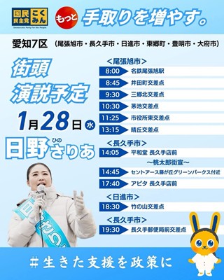 愛知県第7区国民民主党公認「日野さりあ」候補