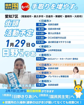 第51回衆議院選挙・愛知県第7区国民民主党公認「日野さりあ」
