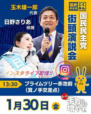 本日の応援弁士は国民民主党 玉木 雄一郎 代表