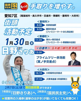 愛知県第7区国民民主党公認「日野さりあ」候補