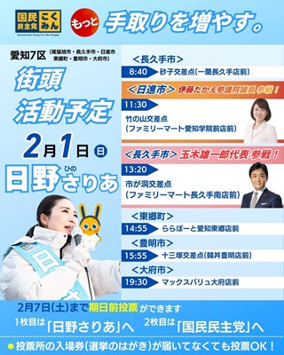 愛知県第7区国民民主党公認「日野さりあ」