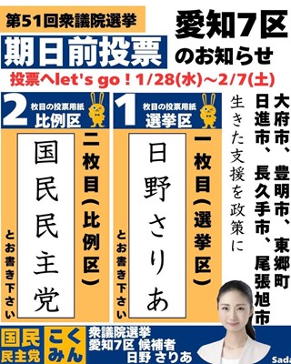 国民民主党公認「日野さりあ」候補