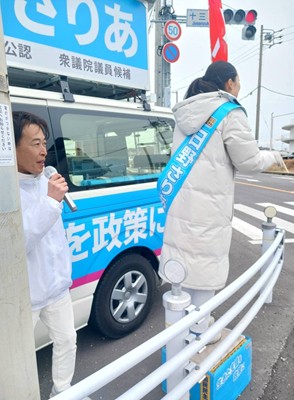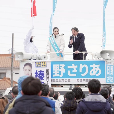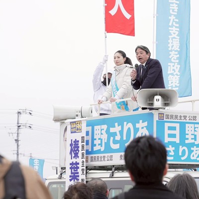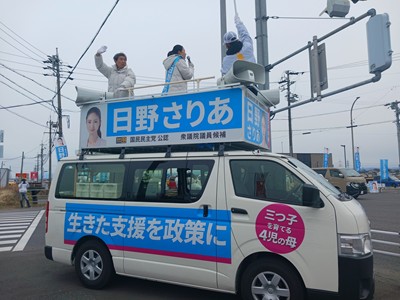 愛知県第7区・国民民主党公認「日野さりあ」候補に榛葉賀津也幹事長が3回目の応援に駆け付けて頂きました。
