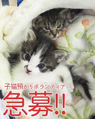 自宅で子猫の預かりをして頂けるボランティアが不足してます。