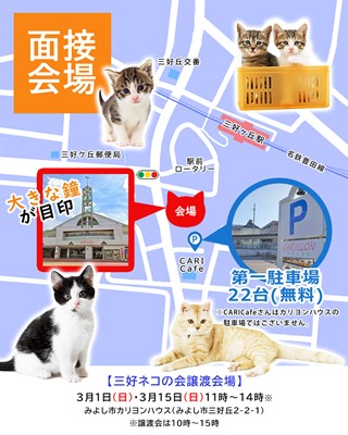 譲渡会場3/1(日)、3/15(日)の11時~14時にお越しください。