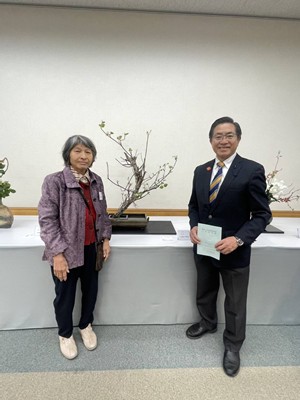 日進市の千秋流・星野星松園(星野昭治)さん、東郷町の宝山流・近藤芳雲庵(近藤智恵子)さんの説明を頂き、各流派の作品を拝見することができました。