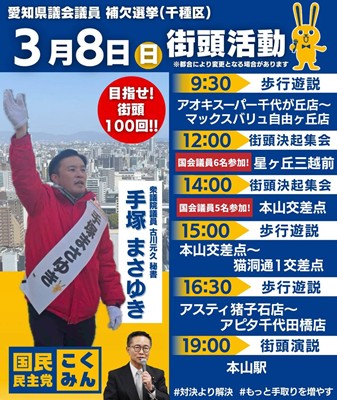 「手塚まさゆき」国民民主党公認候補決起集会(千種区星ケ丘三越前)に参加しました。