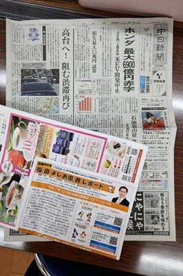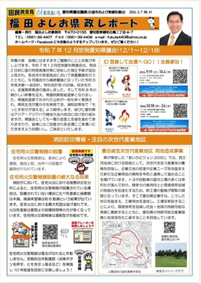 県政レポートNo41が中日新聞・毎日新聞折込み、及び未読宅ポスティングします。