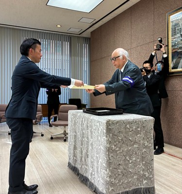 愛知県議会議員選挙(名古屋市千種区選出)にトップ当選した手塚まさゆきさんに当選証書が授与され「手塚まさゆき県議会議員」になりました。