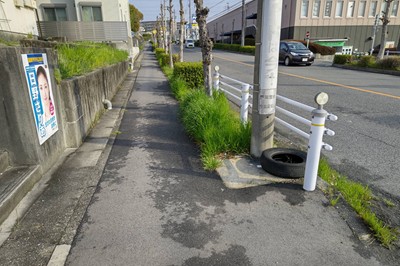 交差点にゴミやタイヤが落ちてました(不法投棄?)