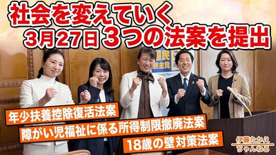 国政、地方とも「現実的な政治」「正直な政治」「対決より解決」で「手取りを増やす」政策を展開します。