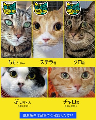 今週末の譲渡会は人懐っこい成猫、おとなねこ17匹がエントリー♪